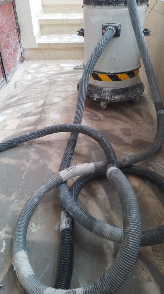 Reconditionare completa mozaic clasic in apartament,slefuire, chituire, margini, lustruire si tratament de protectie :