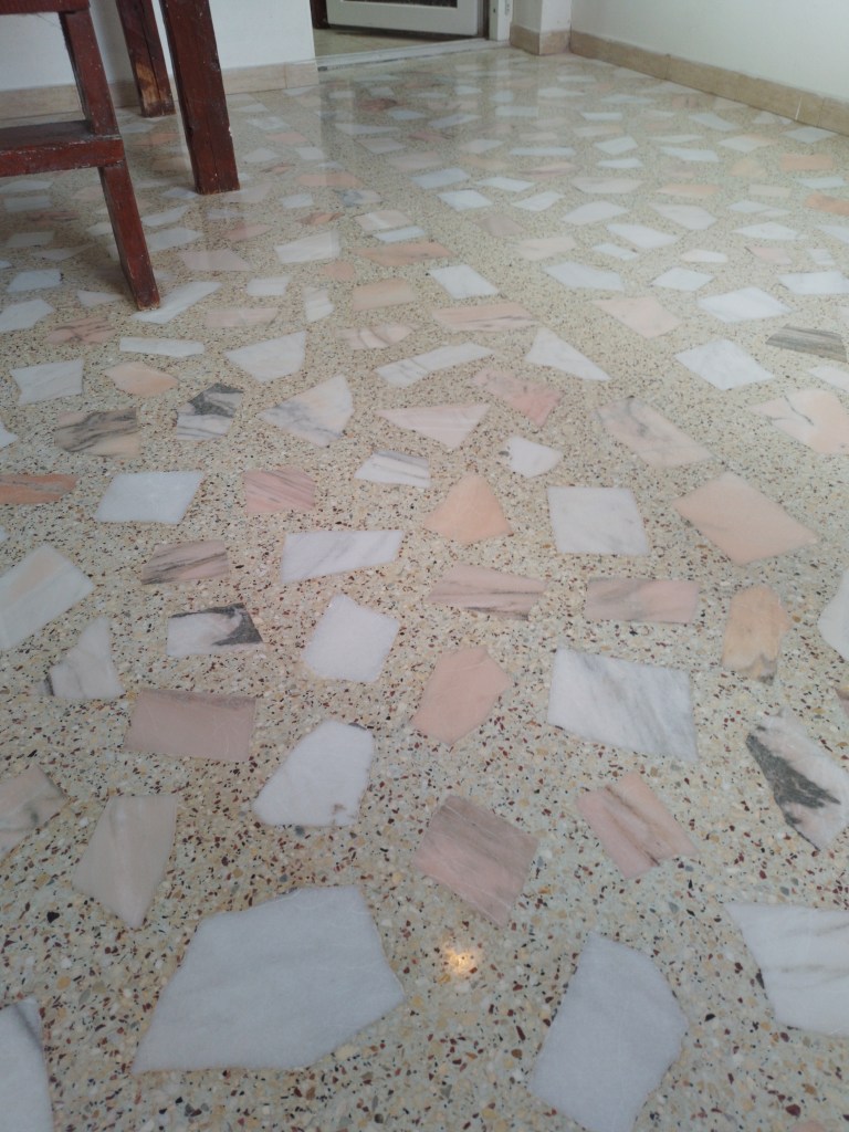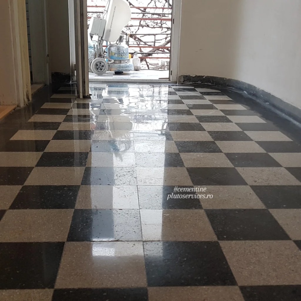 Pardoseala din mozaic slefuita si reconditionata complet, imobil din anii 50 :