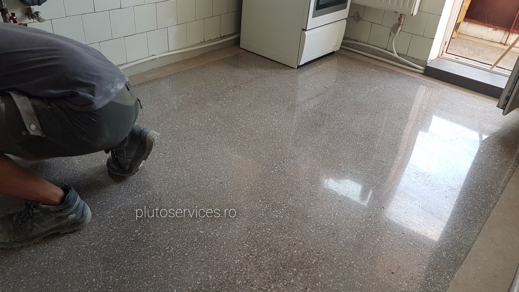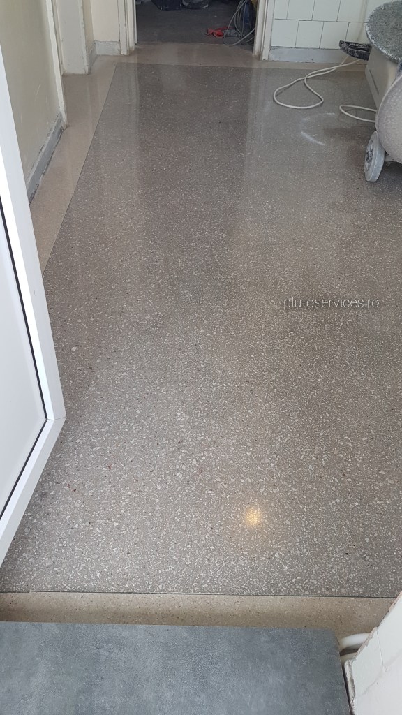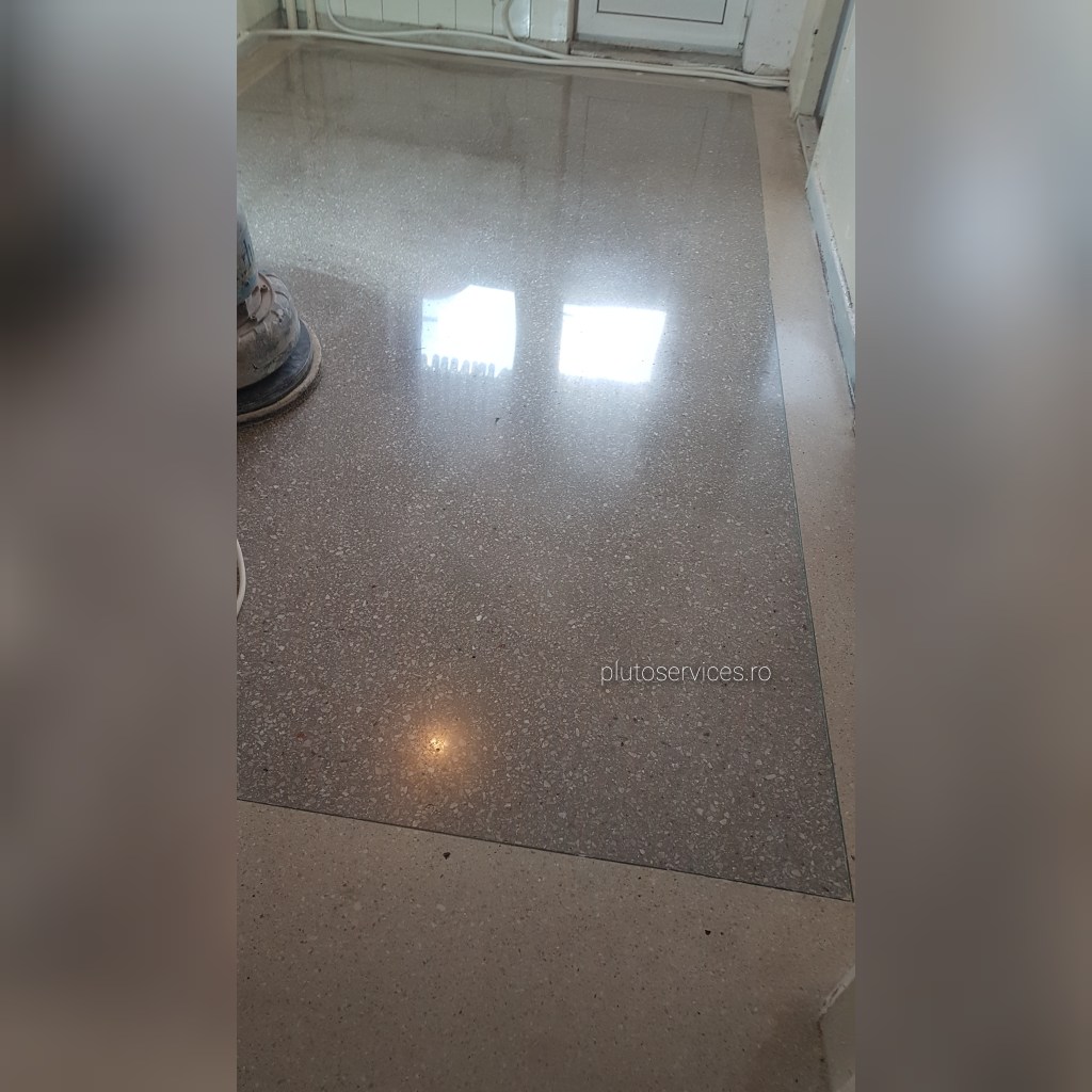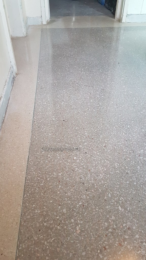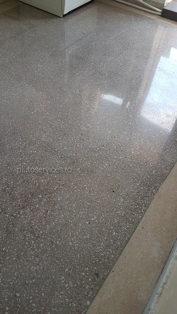 Pardoseala noua din terrazzo, curatare si lustruire dupa montaj si amenajari in restaurant :