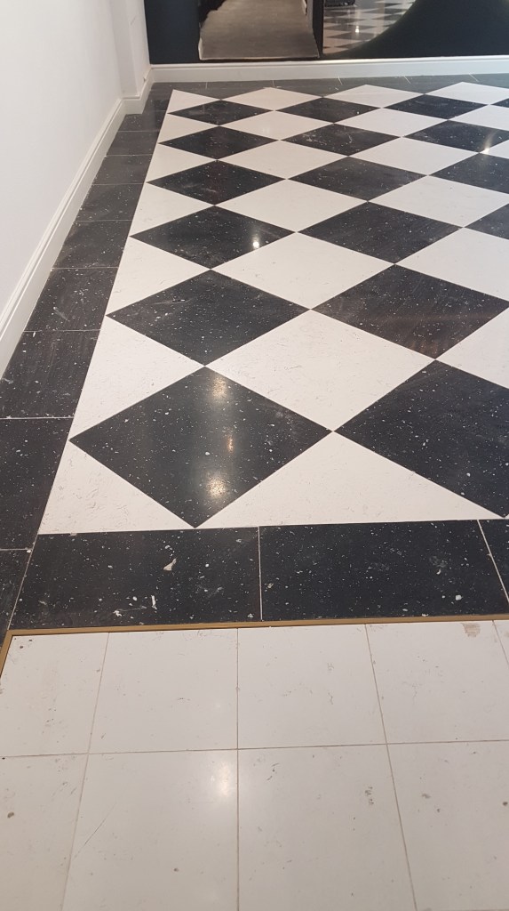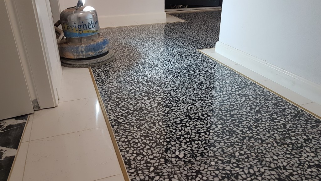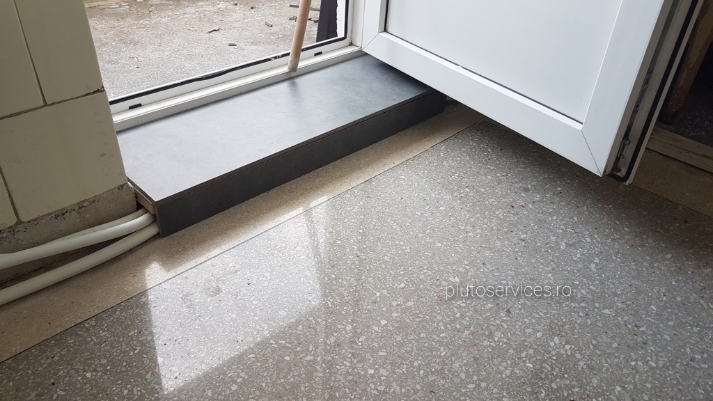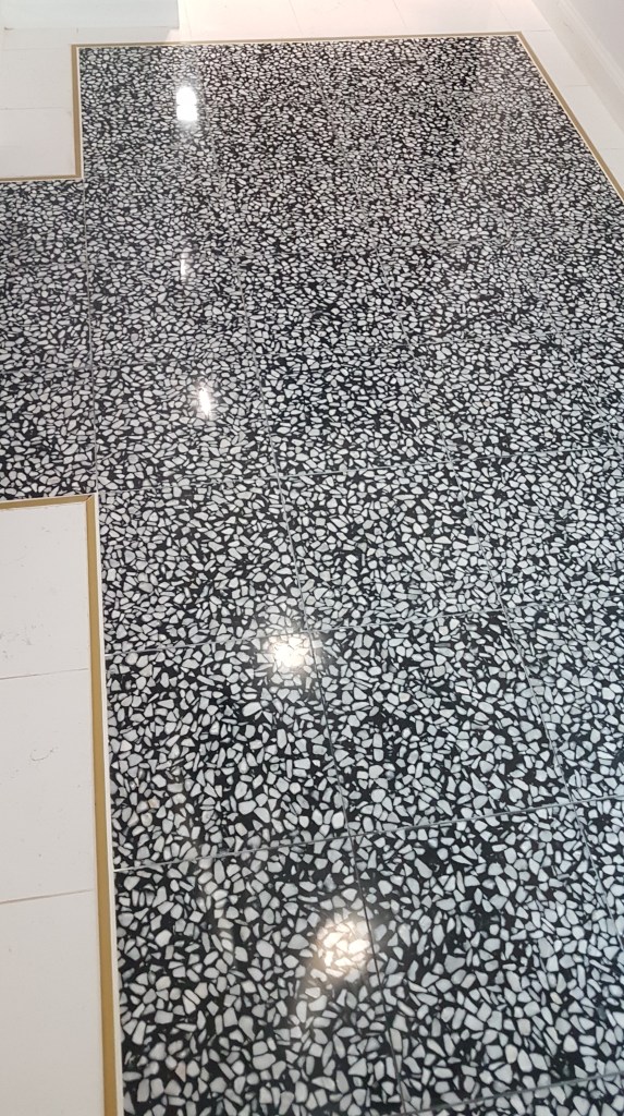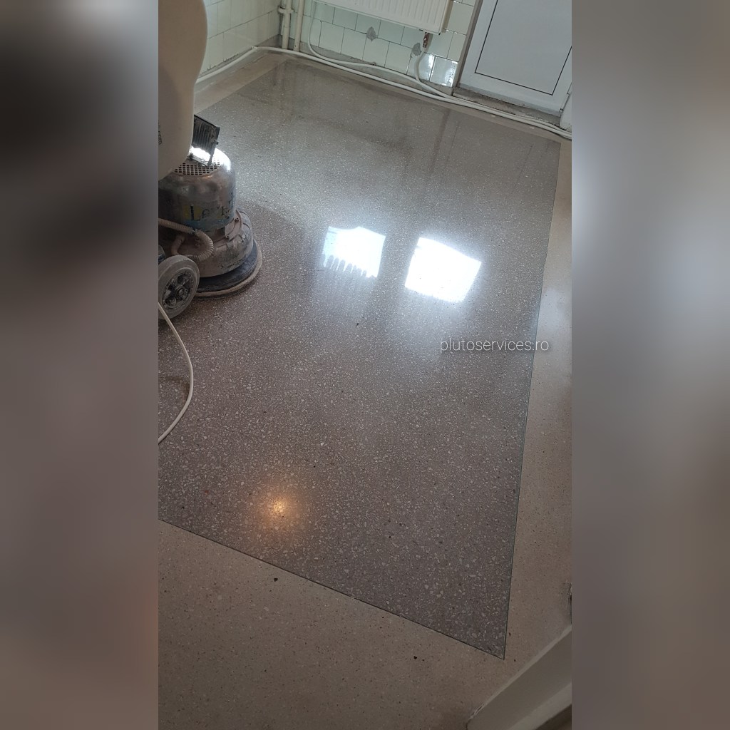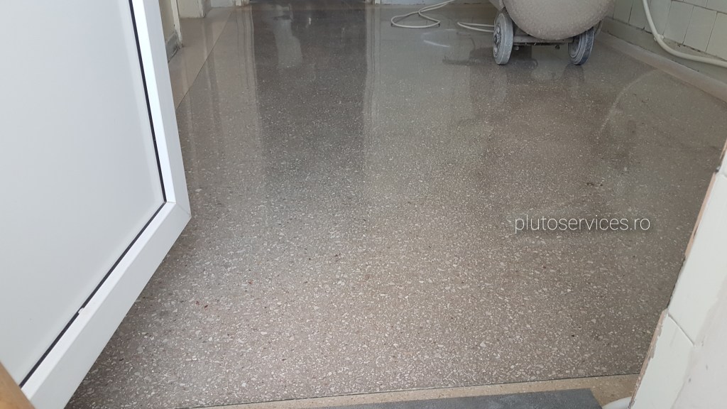 Pardoseala noua din terrazzo, curatare si lustruire dupa montaj si amenajari in restaurant :