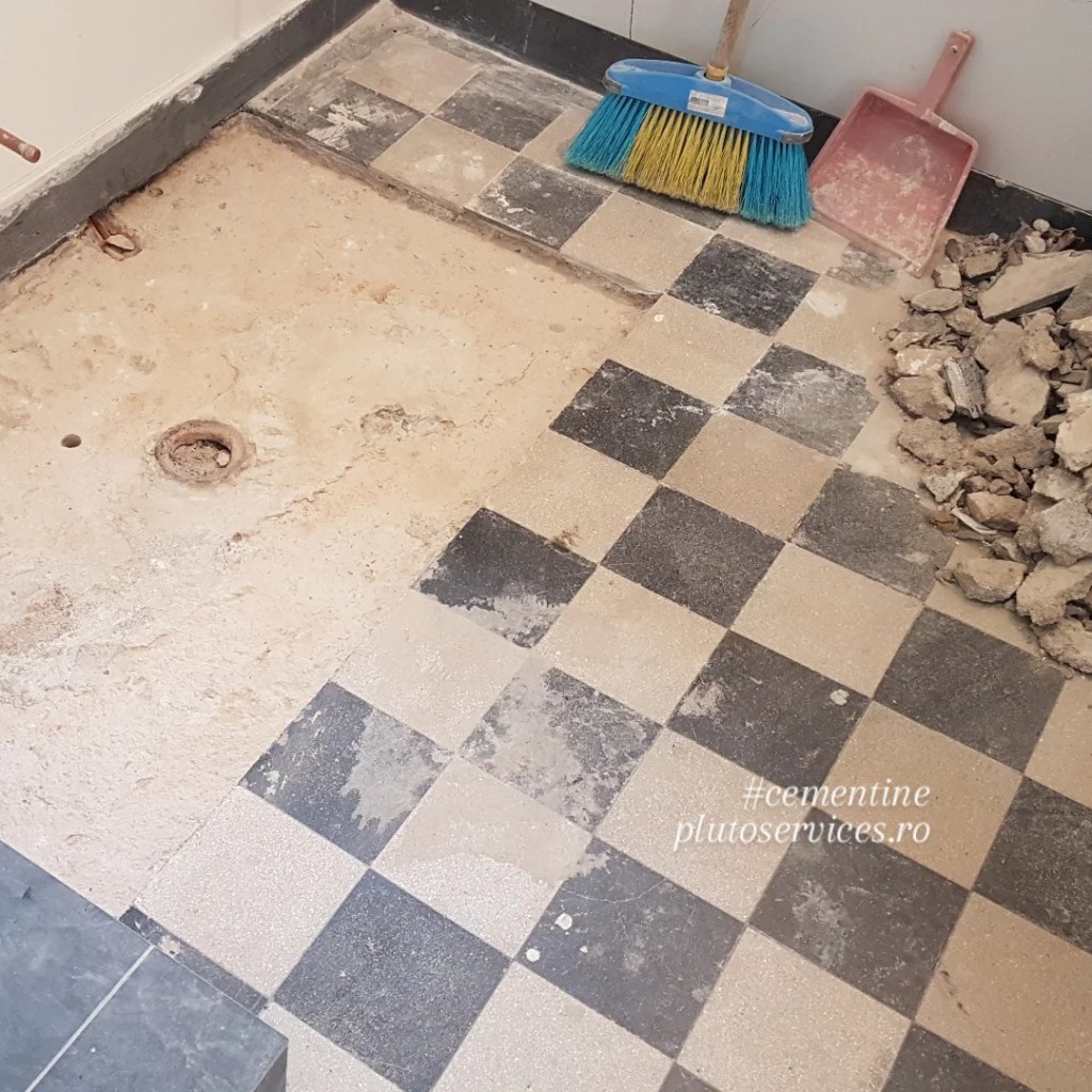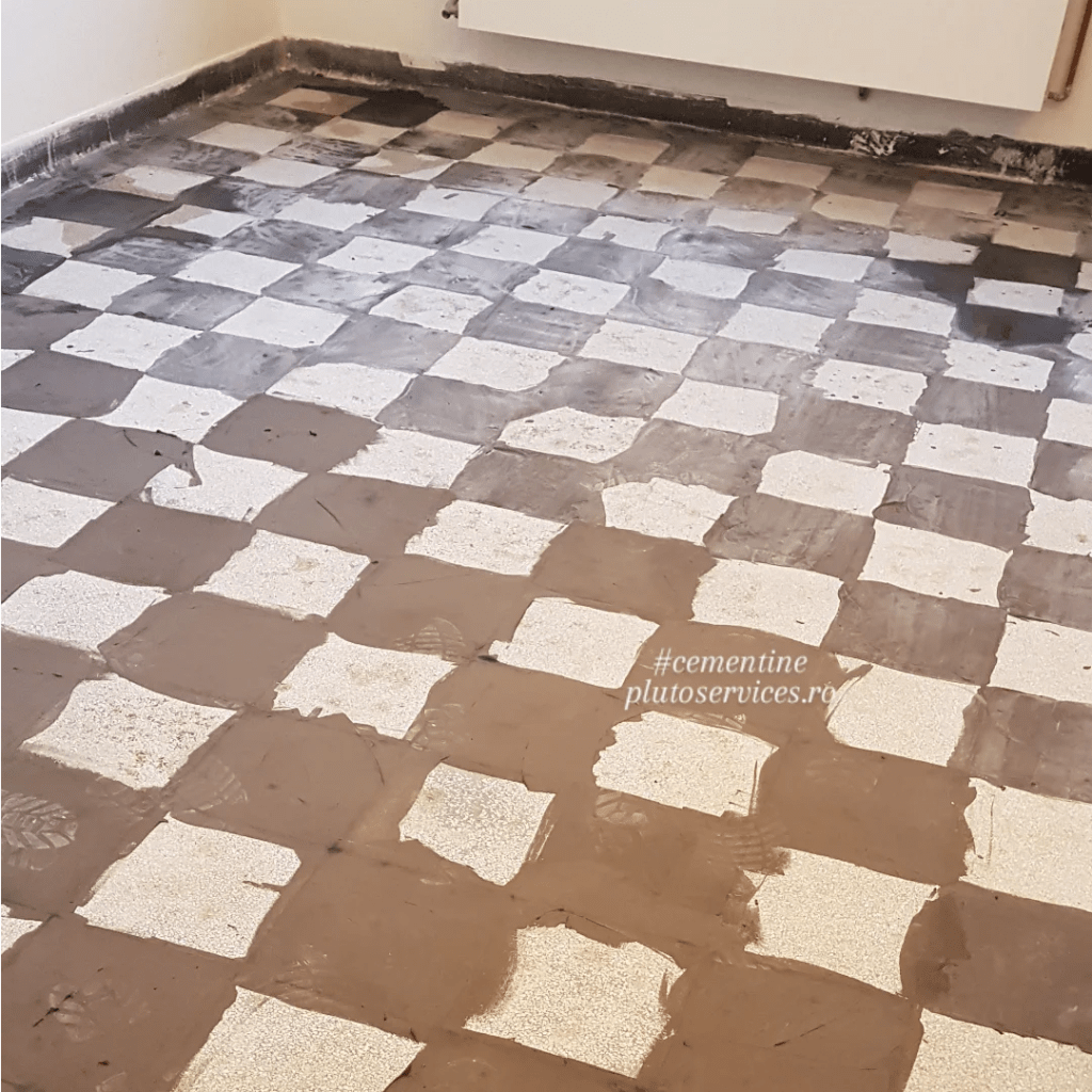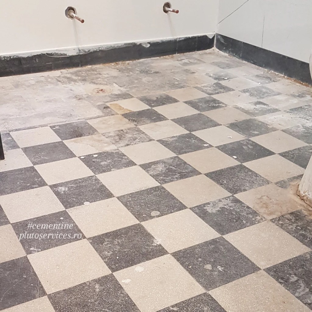 Reconditionare pardoseala din mozaic vechi (cunoscuta la italieni ca si cementine, mozaic hidraulic, etc) :