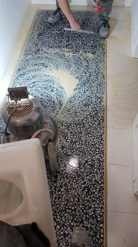 Reconditionare, slefuire, chituire si lustruire mozaic venetian in cladire veche de peste 100 de ani :