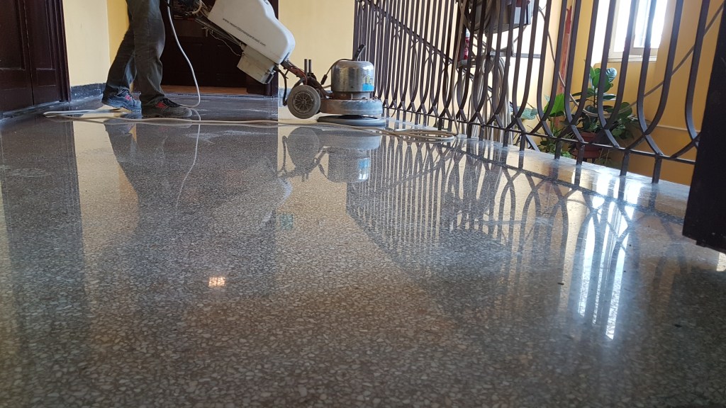 Reconditionare completa pardoseala veche din mozaic, slefuire, reparatii, lustruire :